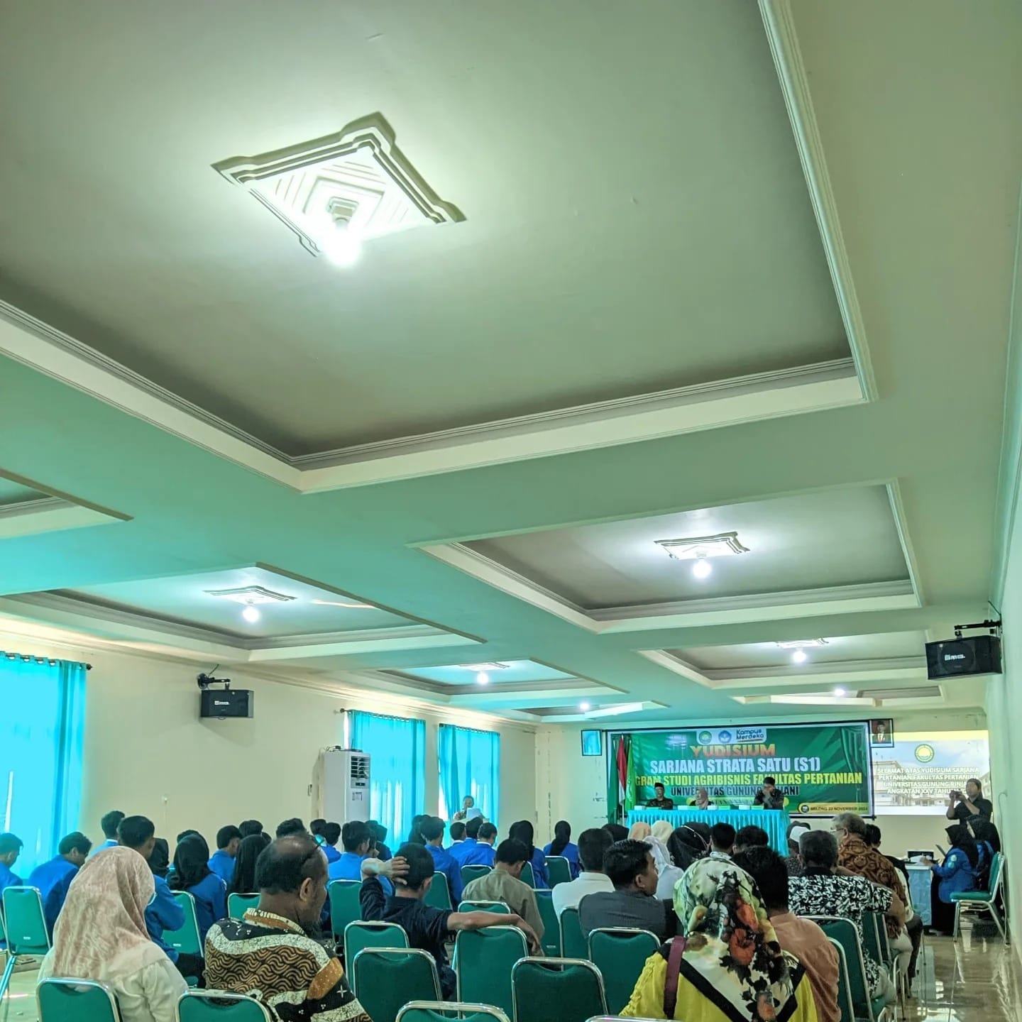 Acara Yudisium FP UGR (Fakultas Pertanian Universitas Gunung Rinjani) dilaksanakan di aula lantai tiga gedung baru UGR pada, 23/11.
