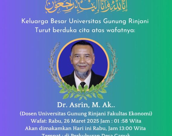 Civitas Akademika Universitas Gunung Rinjani turut berbelasungkawa atas Meninggalnya Dr. Asrin, M. Ak. By UGRIn UcapanPosted 26 Maret 2025